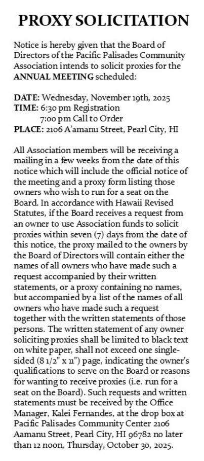 2106 Aamanu Street, Pearl City, HI 96782 Phone: (808) 723-4392 Email: ppcahawaii@gmail.com Mailing Address: PO Box 1439, Pearl City, HI 96782